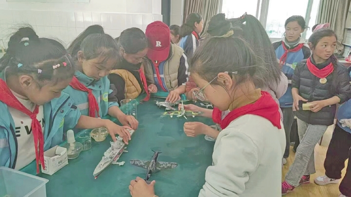 “大家先观察飞机模型的机翼角度,它决定了飞行时的升力;组装船只时,要注意船体平衡,不然会侧翻。”在科技模型课上,魏见明老师手持教具,向学生们讲解模型制作的关键原理,郑德洪老师则在课桌间巡回指导,手把手帮学生解决组装难题。