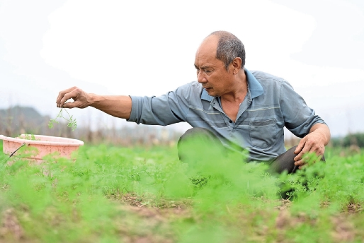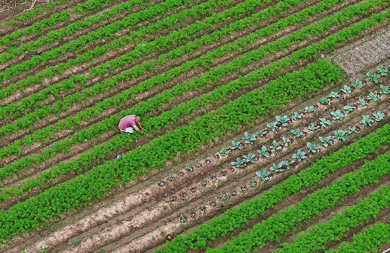 10月11日,四川省内江市东兴区椑木镇水心坝村,菜农在红萝卜种植园里疏苗,加强田间管理。
