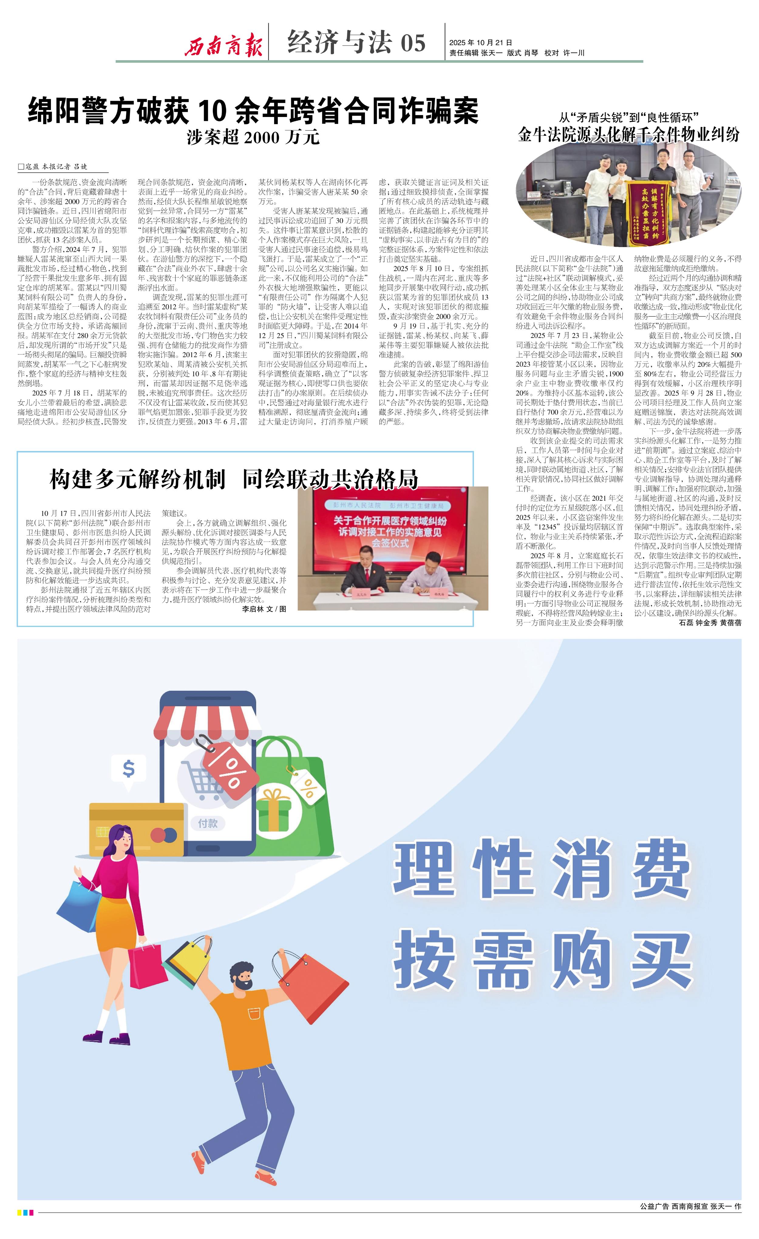 近日,四川省成都市金牛区人民法院(以下简称“金牛法院”)通过“法院+社区”联动调解模式,妥善处理某小区全体业主与某物业公司之间的纠纷,协助物业公司成功收回近三年欠缴的物业服务费,有效避免千余件物业服务合同纠纷进入司法诉讼程序。