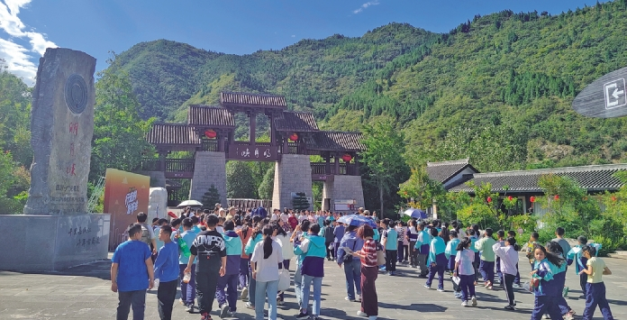 “同学们看,脚下的这条古栈道,曾是诸葛亮北伐的运兵通道;而头顶的宝成铁路,则是新中国建设的奇迹。历史与现代,就在这峡谷间交汇!”10月21日,四川省广元市朝天区迎来了一批特殊的访客——来自剑阁县两所学校的800余名学子在明月峡景区与雪溪洞开启了一场集历史探秘与自然观察于一体的深度研学之旅,沉浸式感受朝天区独特的文旅魅力。
