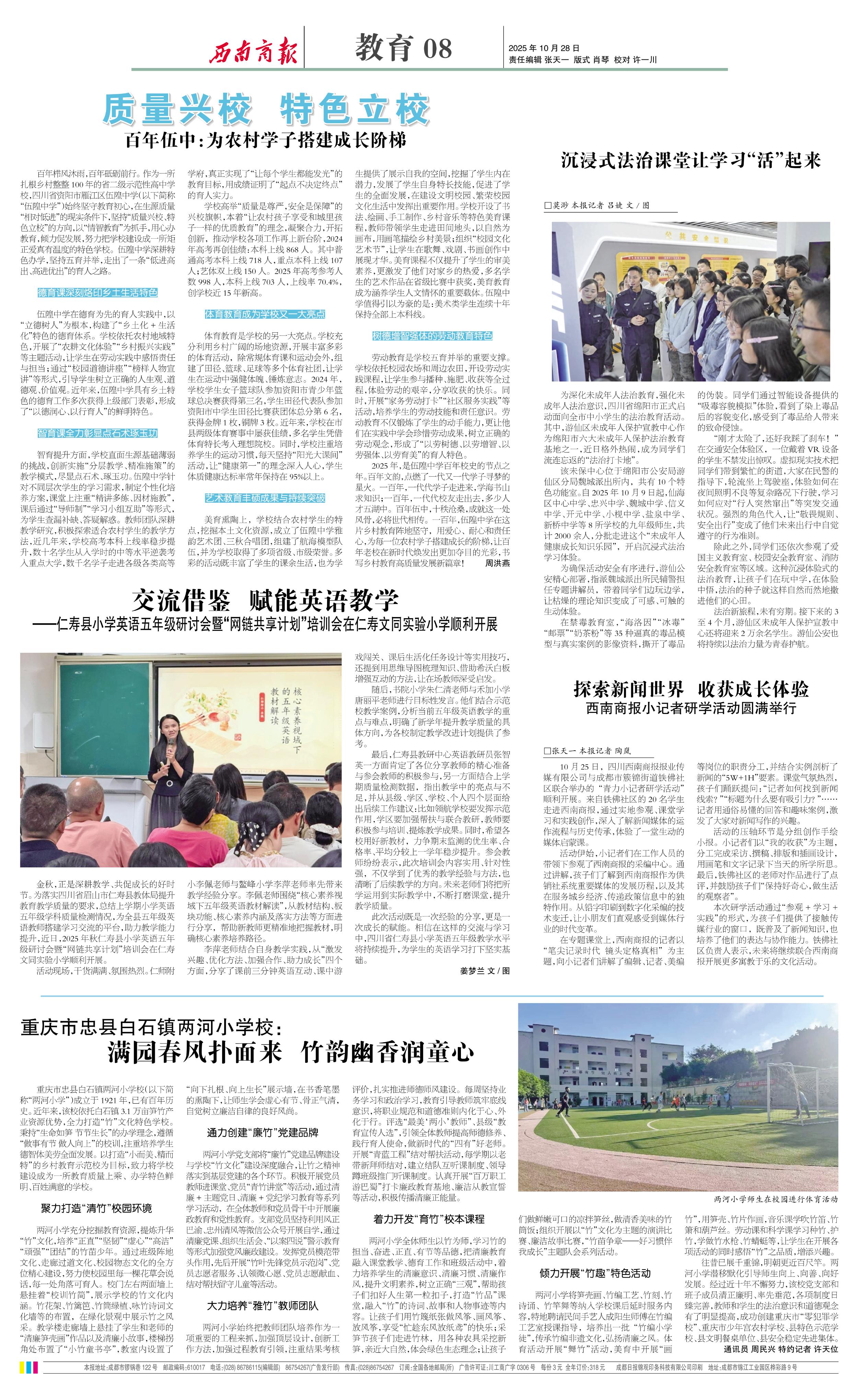 在专题课堂上,西南商报的记者以“笔尖记录时代 镜头定格真相”为主题,向小记者们讲解了编辑、记者、美编等岗位的职责分工,并结合实例剖析了新闻的“5W+1H”要素。课堂气氛热烈,孩子们踊跃提问:“记者如何找到新闻线索?”“标题为什么要有吸引力?”……记者用通俗易懂的回答和趣味案例,激发了大家对新闻写作的兴趣。