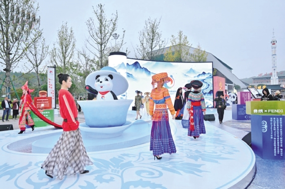 在“业态共生·全域发展”板块,展览以多种微缩沉浸式体验场景,充分呈现四川聚焦文博旅游、红色旅游、演艺赛事、生态康养、农文旅融合等五大业态,加速推进“全域联动、全季畅游、全时消费”的探索和成效。四川非遗IP授权成果“T台秀”将蜀锦蜀绣、藏羌织绣、非遗竹编等传统技艺与NBA、宝格丽、李宁等国内外知名IP跨界融合,让“博物馆里的展品”变成年轻人追捧的“潮品”;“少必入川”数字体验空间、“‘青’睐绵阳”机甲熊猫等,构建“全域联动、全季畅游、全时消费”新场景。