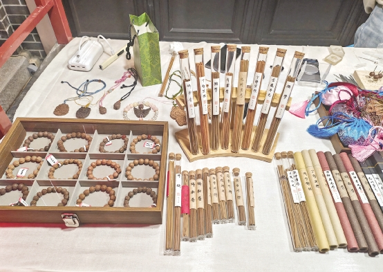 在文昌合香制作技艺展位前,扑鼻而来的香气引得游客纷至沓来,争相品味并亲手体验制香技艺。“我国用香传统源远流长,而合香的制作需要经过药材的炮制、研磨、筛粉、和泥、醒泥、塑型、晾干等一系列繁琐的工序。”梓潼县第五批县级非物质文化遗产代表性项目文昌合香制作技艺传承人李睿一边向游客详细讲解合香的独特配方,一边现场展示合香的制作过程。