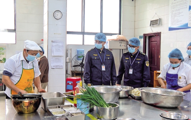 在九龙镇第一幼儿园等学校的食堂操作间,执法人员从食材清洗、切配、烹饪,到食品留样、餐具消毒,对每一个环节都进行了细致排查。重点查看了食品加工过程中是否烧熟煮透、加工完成至用餐时间是否控制在安全时限内,并对原料采购、人员健康管理、设备清洁及“三防”设施等落实情况逐一核实。