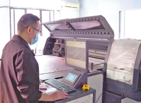 “公司自投产以来,每天生产约2000平方米3D柔性石材,目前能生产包括3D洞石、脉络石、夯土板等40余种产品,销往全国各地,外贸签约销售额500万元,预计今年底总产值能达到1500万元。”巴山虎重庆智能技术有限公司总经理汪守杨介绍。