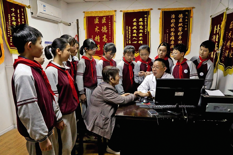 近日,四川省广安市广安区富源小学校学生在福源医院中医科观摩老中医把脉问诊,沉浸式感受传统中医的魅力。