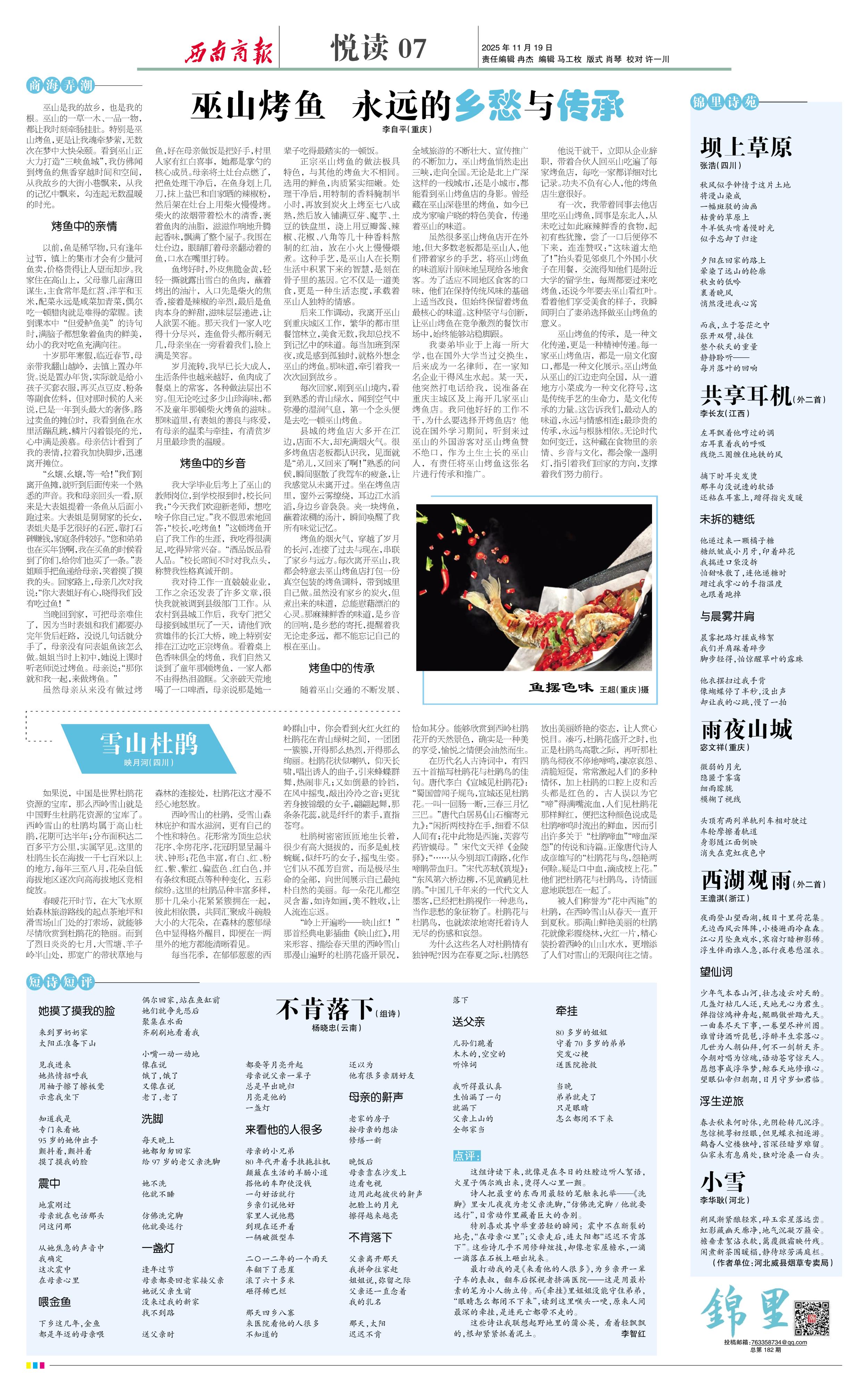 后来工作调动,我离开巫山到重庆城区工作,繁华的都市里餐馆林立,美食无数,我却总找不到记忆中的味道。每当加班到深夜,或是感到孤独时,就格外想念巫山的烤鱼。那味道,牵引着我一次次回到故乡。