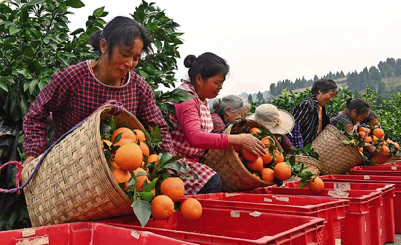 柑橘飘香采摘忙 11月24日,在四川省内江市东兴区富溪镇天赐村的柑橘园内,村民正忙着采摘柑橘供应市场。 近年来,该镇通过“党支部+合作社+农户”的模式,利用荒山荒坡发展柑橘特色产业,带动村民增收。