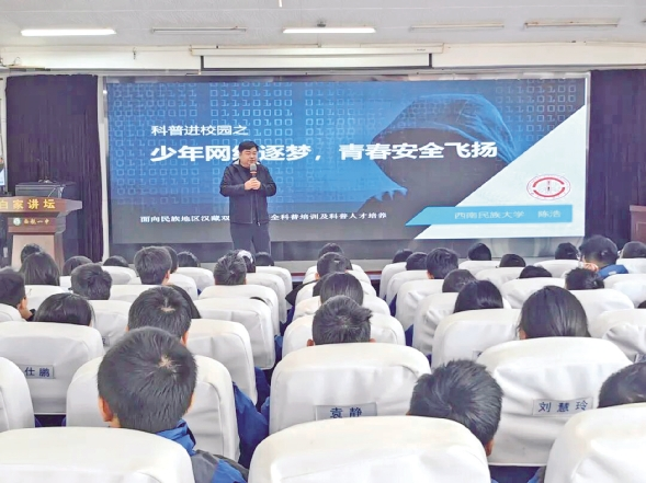 为搭建校社协同育人桥梁,丰富青少年精神文化生活、强化网络安全素养,11月27日,四川省成都市双流区西航港街道白家场社区联合西南民族大学计智学院开展“智汇同心校社共建”AI进社区系列活动走进西航港第一初级中学,通过优秀作品展示、AI科普与网络安全培训相结合的形式,为师生带来了一场兼具思想性、知识性与实践性的沉浸式体验。
