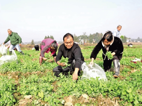 李小东与村民一道掐豌豆尖 “用拇指和食指夹住豌豆苗的嫩茎,手法轻柔,避免撕扯茎秆,最好斜剪45度或直接掐断。”11月27日,见到四川省广安市广安区政协委员、广安惠民农机农艺专业合作社负责人李小东时,这名新农人正在花桥镇竹林村指导村民掐豌豆尖。