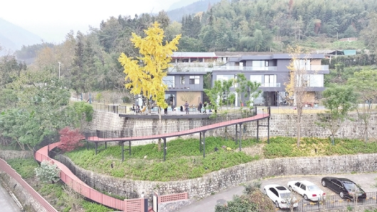 在白果村的蜿蜒公路旁,一座轻奢现代风格的建筑依山而立,270度全景落地窗将连绵山色尽收眼底,这便是“不远·白果”民宿。“当时我找了很久,就想找一个能安放田园梦想的地方。第一次看到这里的山水,呼吸到清新的空气,就有一种‘一眼定终身’的感觉。”民宿负责人谢玲回忆起选址时的情景仍颇有感触。