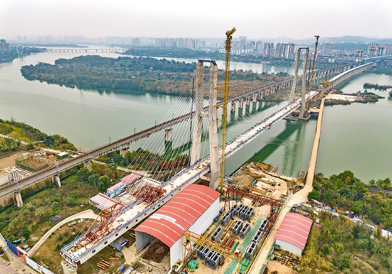12月8日,四川省遂宁市船山区,成都至达州至万州高速铁路(以下简称“成达万高铁”)遂宁涪江特大桥施工现场正在有序施工。遂宁涪江特大桥位于船山区境内,是全线“3隧4桥”重难点控制性工程之一,大桥全长5585.4米。目前,遂宁涪江特大桥已经合龙,为成达万高铁按期通车奠定基础。