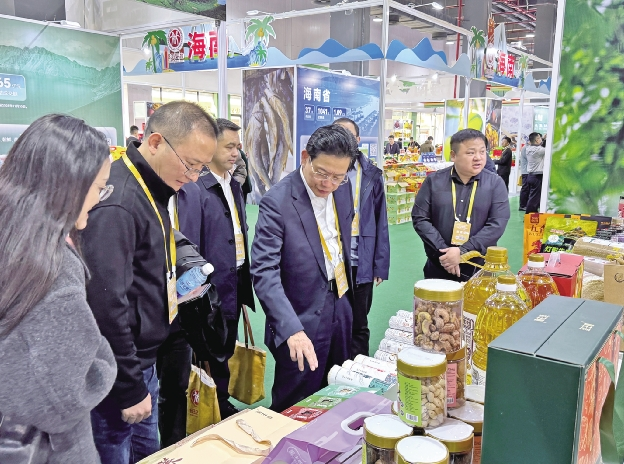 四川省供销社党组书记、理事会主任蔡邦银在四川展区详细了解参展情况 □本报记者 胡斌 文/图