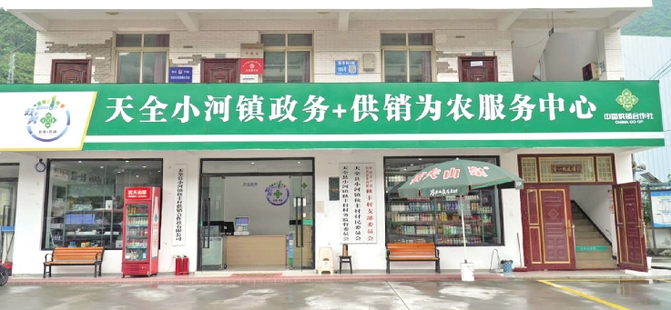新时代的供销社,成为服务农民生产生活的综合平台。天全县供销社在条件成熟的乡镇,对基层供销社进行改造提升,打造集农资供应、日用品销售、农产品收购、快递收发、小额金融、农技咨询、代缴代办等服务于一体的“乡村综合服务社”。天全县供销社先后与县政务中心合作开展“政务服务+供销”试点,与县文体旅局、文旅公司合作开展“供销+旅游”服务,与县农业农村局合作开展“供销+农业社会化服务”,打造了“乡里乡亲”为农综合服务品牌,实现了政务办理、日用百货、农资销售、通讯、保险、快递等一站式服务,方便了农村群众的生产生活。