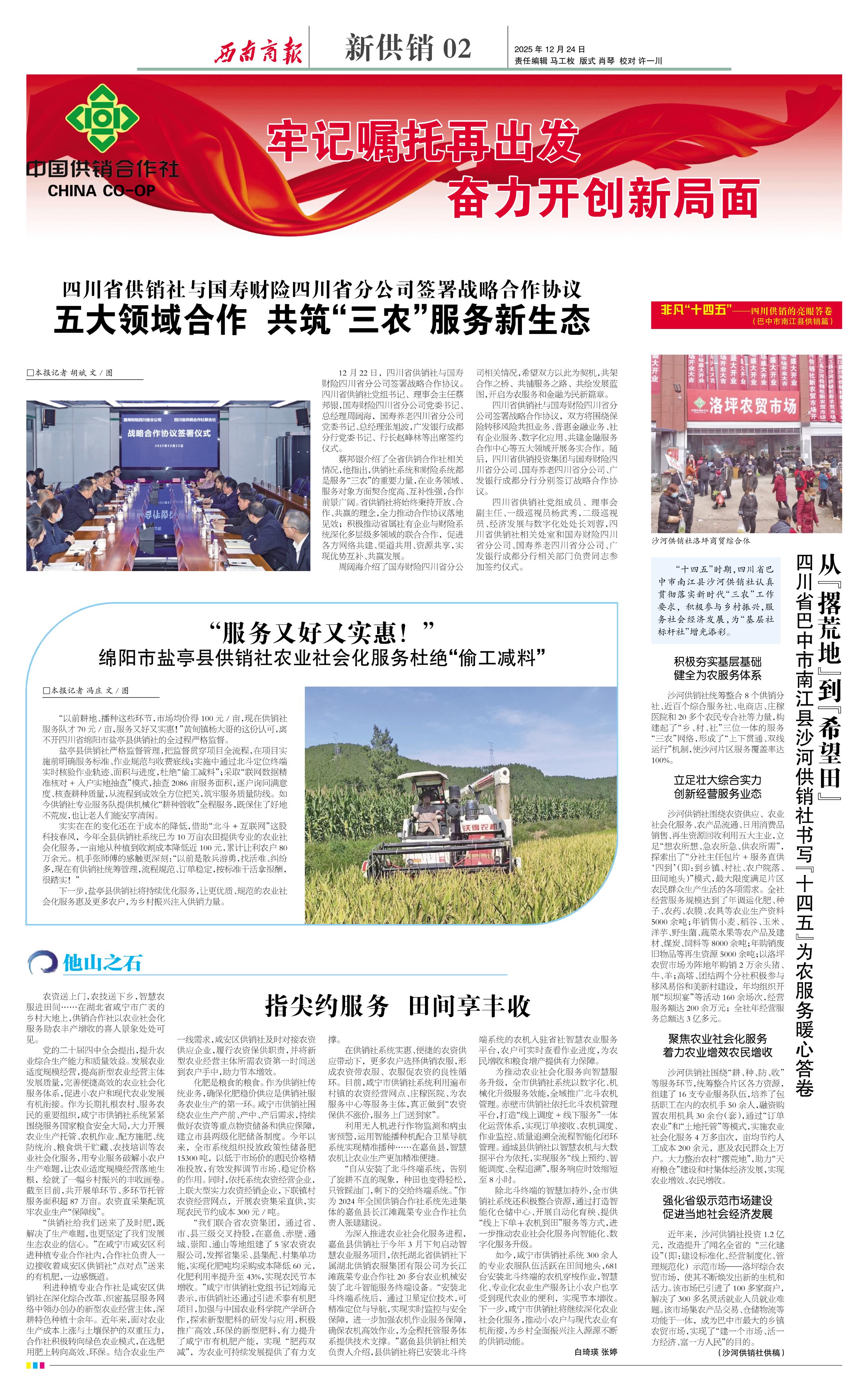 沙河供销社围绕“耕、种、防、收”等服务环节,统筹整合片区各方资源,组建了16支专业服务队伍,培养了包括职工在内的农机手50余人,融资购置农用机具30余台(套),通过“订单农业”和“土地托管”等模式,实施农业社会化服务4万多亩次,亩均节约人工成本200余元,惠及农民群众上万户。大力整治农村“撂荒地”,助力“天府粮仓”建设和村集体经济发展,实现农业增效、农民增收。