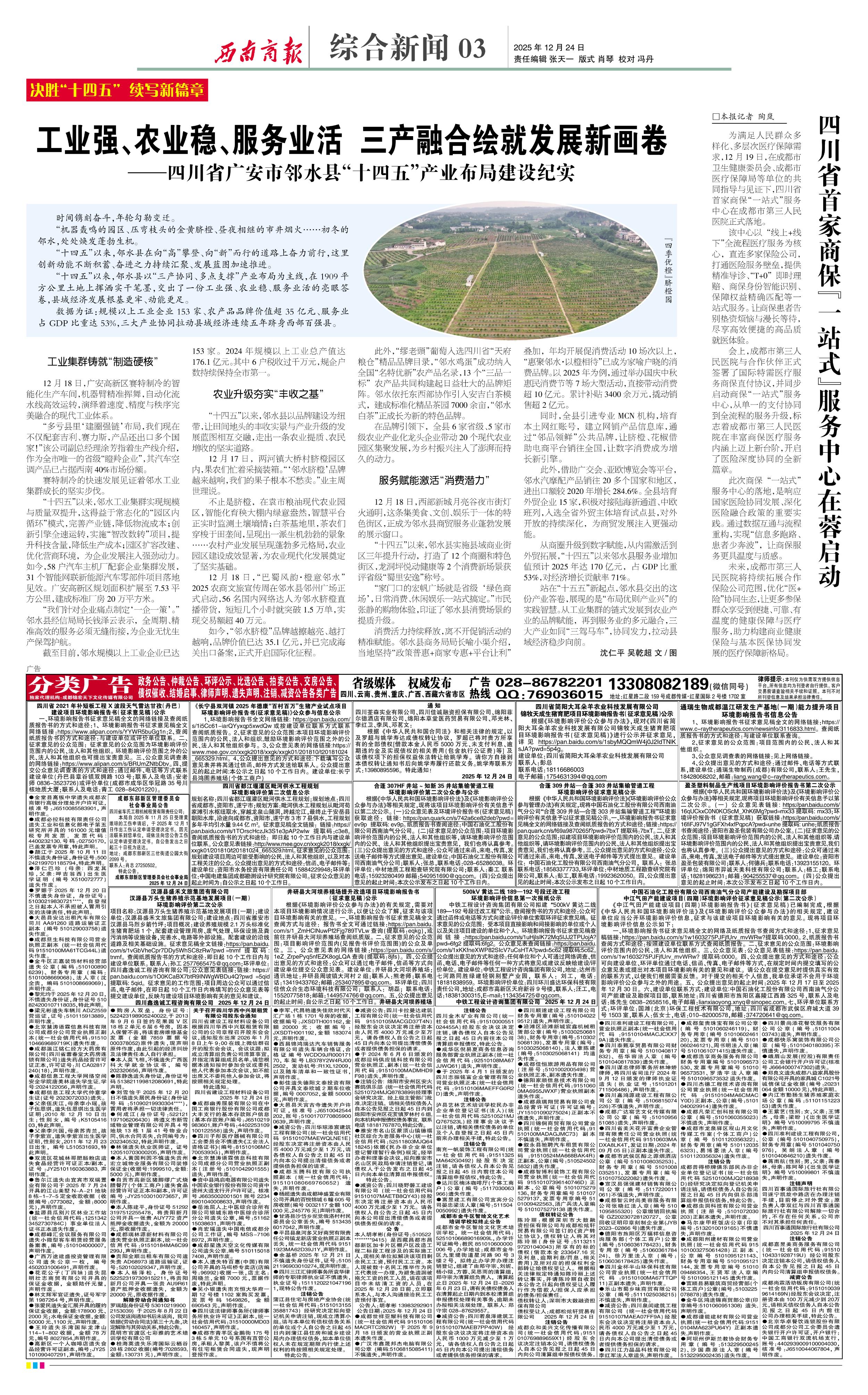 为满足人民群众多样化、多层次医疗保障需求,12月19日,在成都市卫生健康委员会、成都市医疗保障局等单位的共同指导与见证下,四川省首家商保“一站式”服务中心在成都市第三人民医院正式落地。