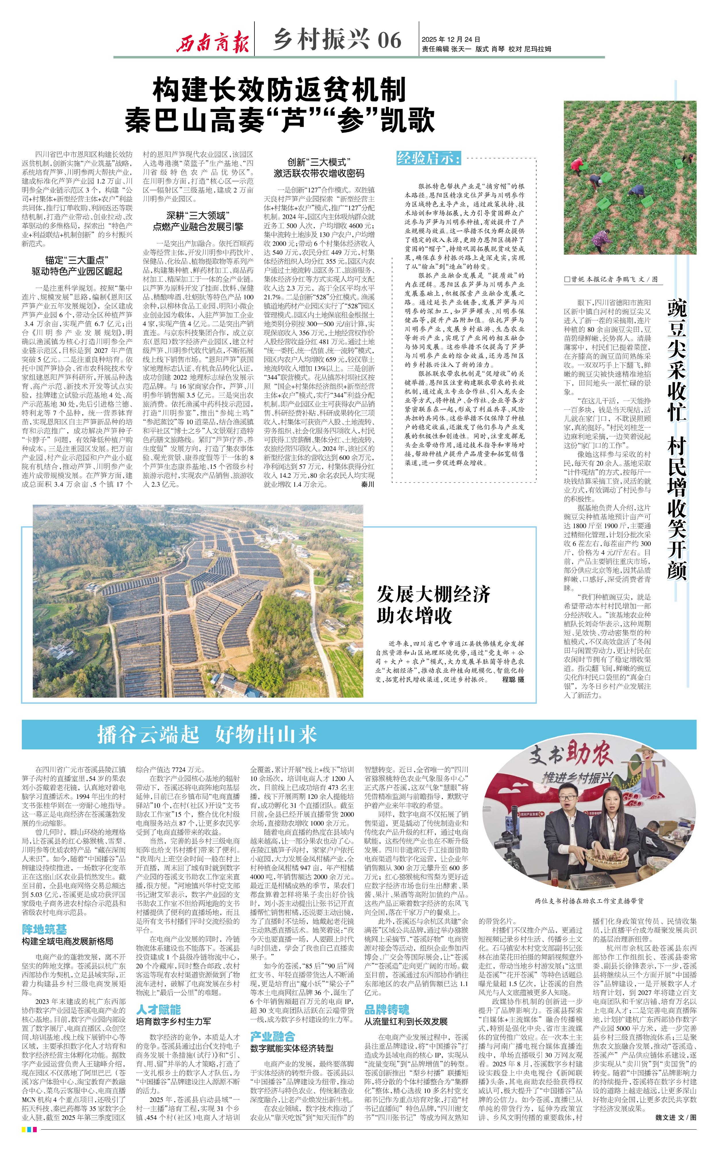 近年来,四川省巴中市通江县铁佛镇充分发挥自然资源和山区地理环境优势,通过“党支部+公司+大户+农户”模式,大力发展羊肚菌等特色农业“大棚经济”,推动农业种植向规模化、智能化转变,拓宽村民增收渠道,促进乡村振兴。