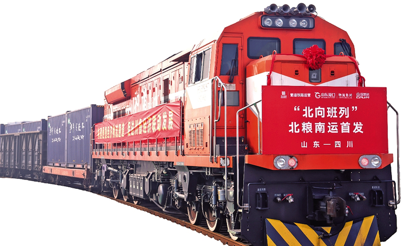 近年来,党中央、国务院高度重视运输结构优化和粮食安全保障,先后出台《有效降低全社会物流成本行动方案》《2024—2025年节能降碳行动方案》《交通物流降本提质增效行动计划》等一系列政策措施,提出“加快建设国家综合立体交通网,持续优化‘西煤东运’‘北煤南运’‘北粮南运’等多式联运系统”,推动大宗货物“公转铁”运输比例持续提升。在此背景下,川鲁两省携手打造的“北向班列”北粮南运通道,成为助力交通强国建设、保障国家粮食安全、促进绿色低碳发展的生动实践。