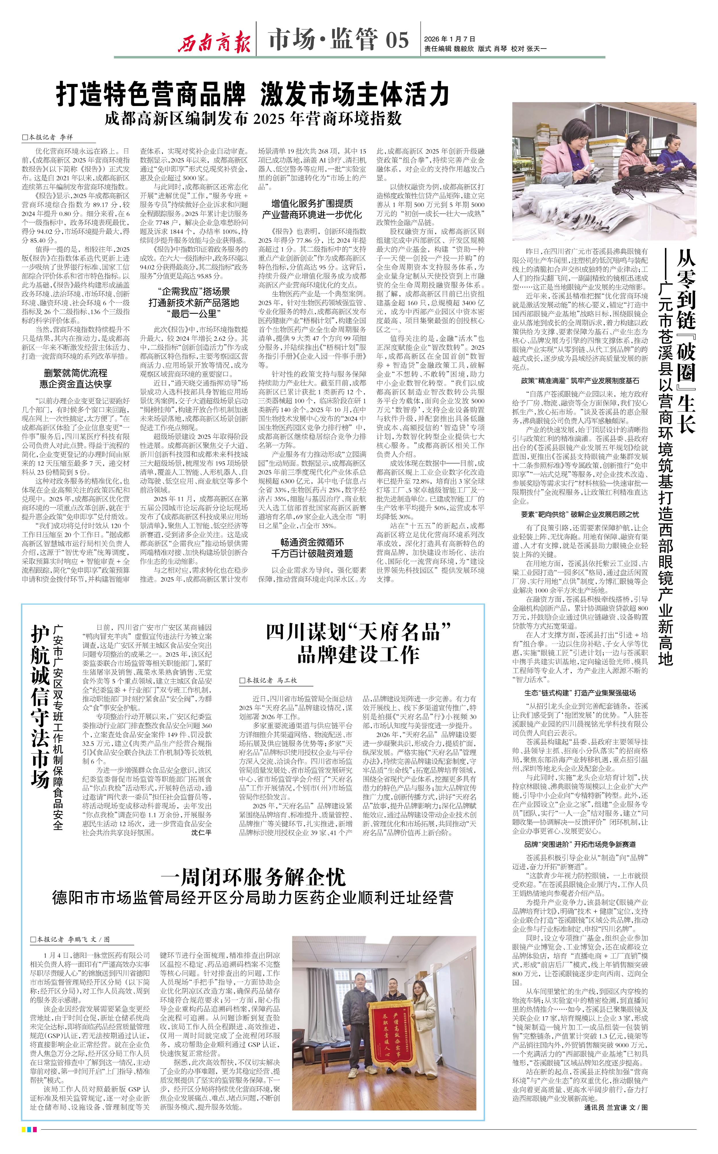 近日,四川省市场监管局全面总结2025年“天府名品”品牌建设情况,谋划部署2026年工作。