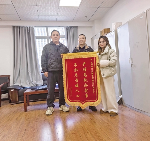 1月4日,德阳一脉堂医药有限公司相关负责人将一面印有“严谨高效办实事尽职尽责暖人心”的锦旗送到四川省德阳市市场监督管理局经开区分局(以下简称:经开区分局),对工作人员高效、周到的服务表示感谢。