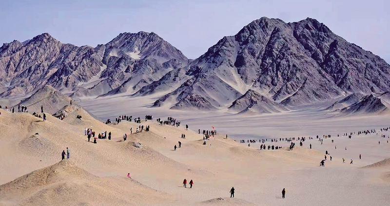 2025年5月景区正式开放后,登山栈道与摆渡车让这份孤绝之美触手可及。晨曦中,黑灰山体泛着蓝灰光晕;日落时,山脊被镀上金边,墨色山峦如泼墨画卷铺展百里。