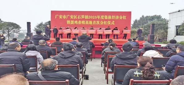 这既是石笋镇对2025年度集体经济发展成果的集中兑现,也标志着镇内重点产业项目——智能化蛋鸡养殖基地实现首次收益共享,生动展现了村集体与供销社系统深化协作、共促振兴的丰硕成果。