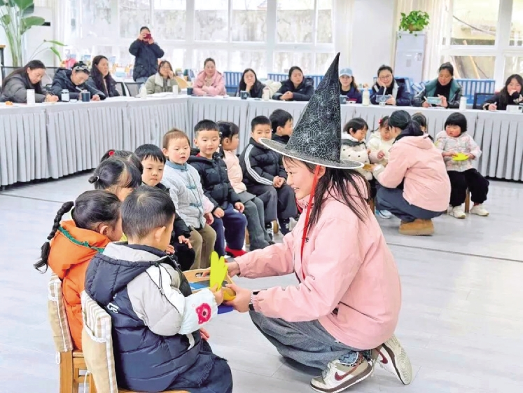 在北街幼儿园,教师们观摩了大班活力早操,聆听了《“双普”实地核查注意事项》等专题分享,学习了保育案例《“摊”上的那些事儿》与肥胖儿干预管理策略,并现场观摩语言集体教学活动。分组入班跟岗环节,双方教师围绕区域活动、环境创设、一日生活组织等展开深度对话。