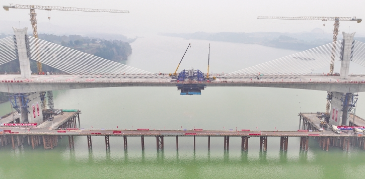 1月19日,随着最后一方混凝土浇筑完成,连接四川省阆中市到营山县的阆营高速控制性工程——嘉陵江特大桥主跨完成合龙作业。这也标志着大桥的主桥完成施工建设,为全桥贯通打下基础。嘉陵江特大桥全长1379米,宽32.5米。其中主桥长490米,主跨240米。