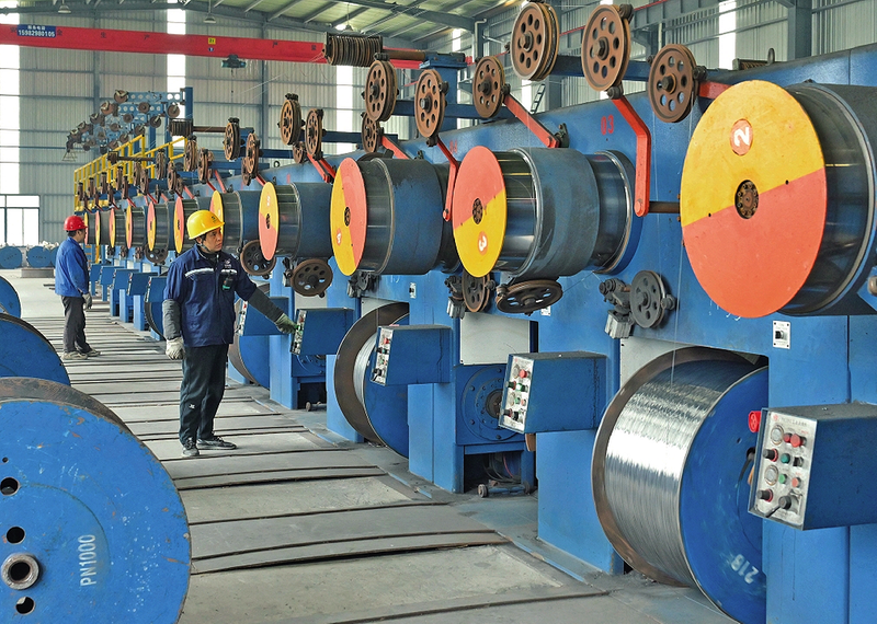 近日,工人在四川涵淳科技有限责任公司生产车间操作设备生产高端钢丝绳。
