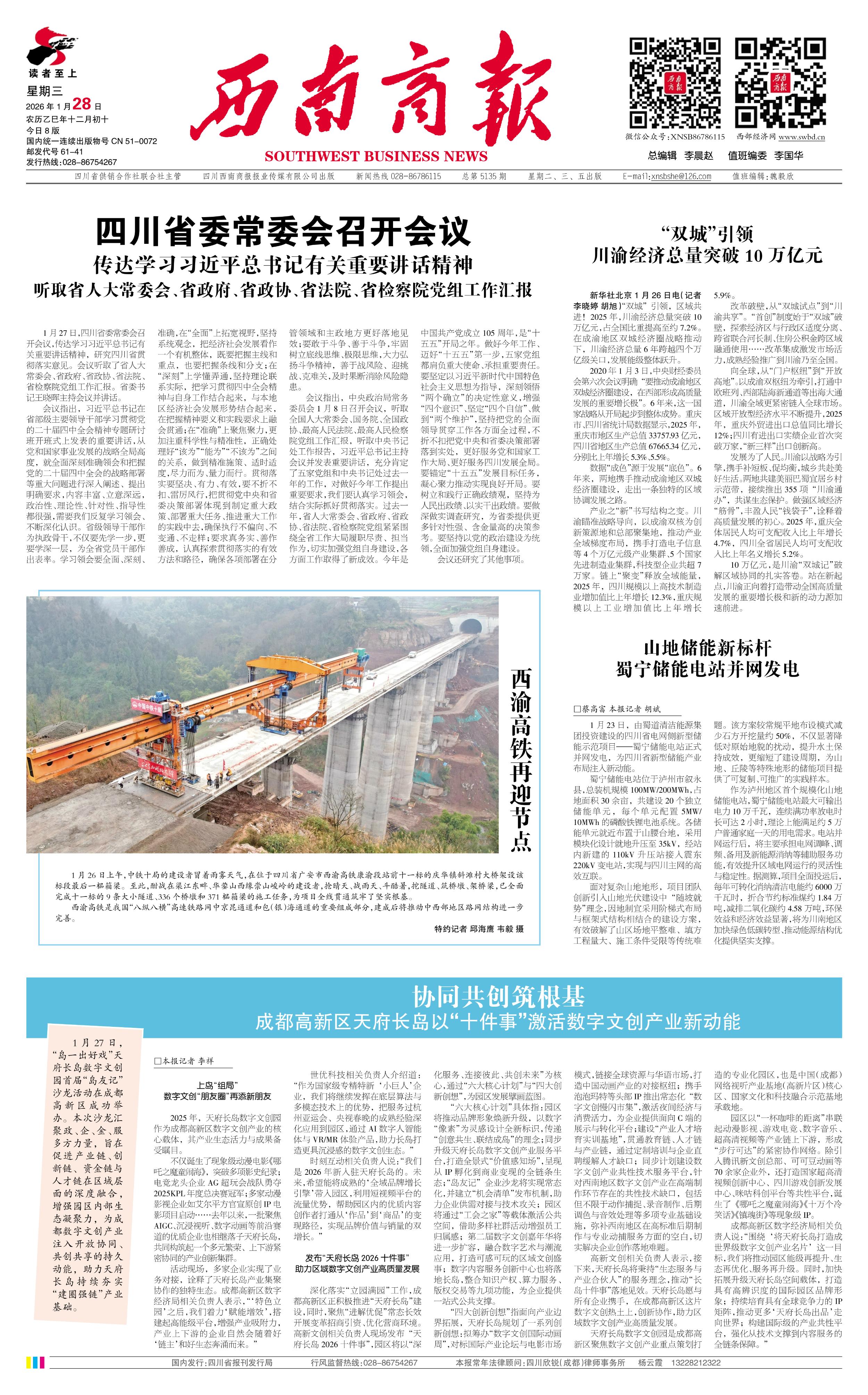 “双城”引领 川渝经济总量突破10万亿元