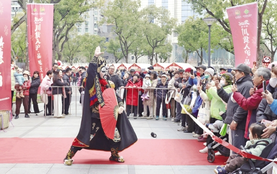 精彩的川剧变脸表演引来阵阵喝彩 □本报记者 冯庄 实习记者 秦智城 文/图