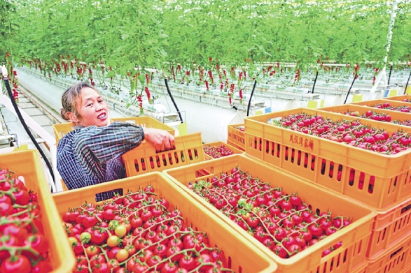 村民在中法农业科技园全气候智能温室内采摘小番茄 杨波 摄 □向欣 本报记者 黄韬 文/图