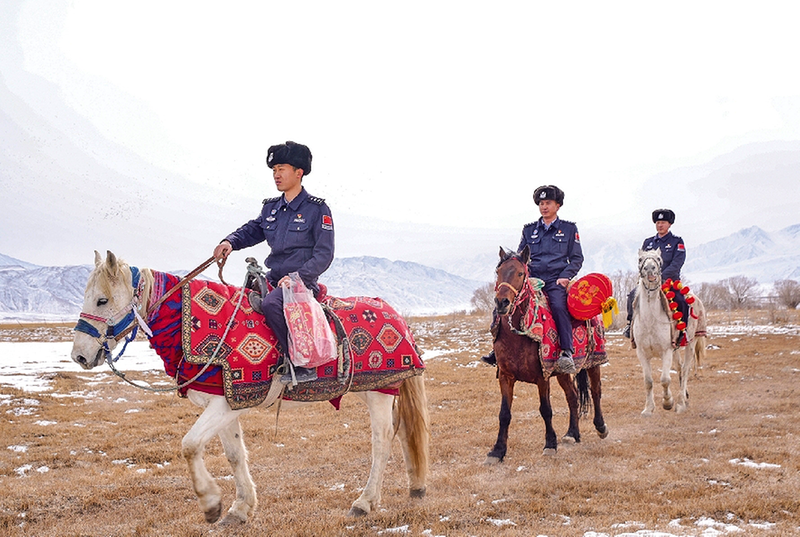 今年1月10日,第六个中国人民警察节当天,帕米尔高原寒风凛冽,警务室却被暖意包围。一位村民捧着精心包装的礼物,踏雪而来,献给他的“亲人”—— 民警王佳乐。