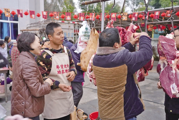近日,在四川省绵阳市游仙区忠兴镇的第二届“新春年货赶场”集市上,土猪土羊、鲜果蔬菜、香肠腊肉等多种本土特色农产品集中亮相,市民现场一站式采购年货,在烟火气中感受地道乡土年味。