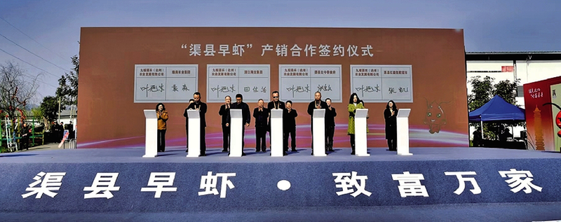 避风塘龙虾香酥入味、蚝皇绝汁龙虾鲜醇浓郁、蒜蓉龙虾蒜香四溢、油焖大虾醇厚酱香……2月11日,2026年“渠县早虾”品牌推介会暨迎春消费季活动在四川省达州市渠县早虾种养示范基地启幕。现场精心设置的渠县早虾品鉴专区成为全场“流量C位”,从基地现捞的鲜活小龙虾经专业厨师烹制后摆盘亮相,引得现场市民争相尝鲜、赞不绝口,更吸引远道而来的粤港澳大湾区客商驻足品鉴、频频点赞。