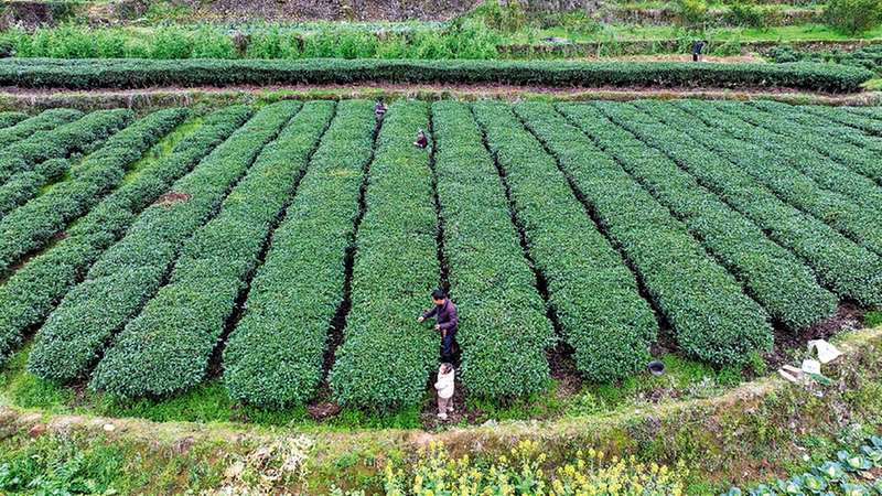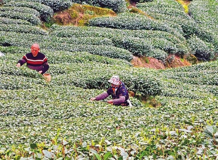 贵州省从江县 3月2日,在贵州省从江县丙妹镇长寨村,村民在采摘春茶。