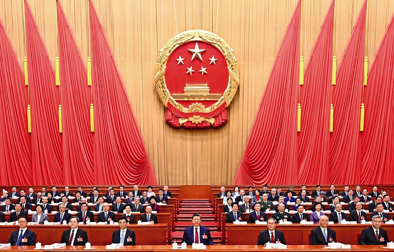 3月5日,第十四届全国人民代表大会第四次会议在北京人民大会堂开幕。党和国家领导人习近平、李强、王沪宁、蔡奇、丁薛祥、李希、韩正等出席大会。 新华社记者 谢环驰 摄