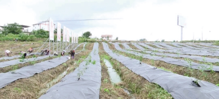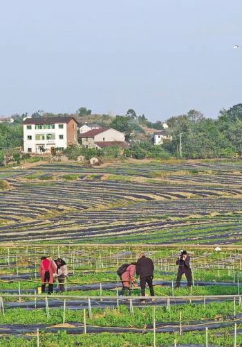 前锋区供销社社属企业广安市前锋区生态农业开发供销有限公司组织技术工人在广安青花椒现代农业园区开展花椒苗覆膜作业