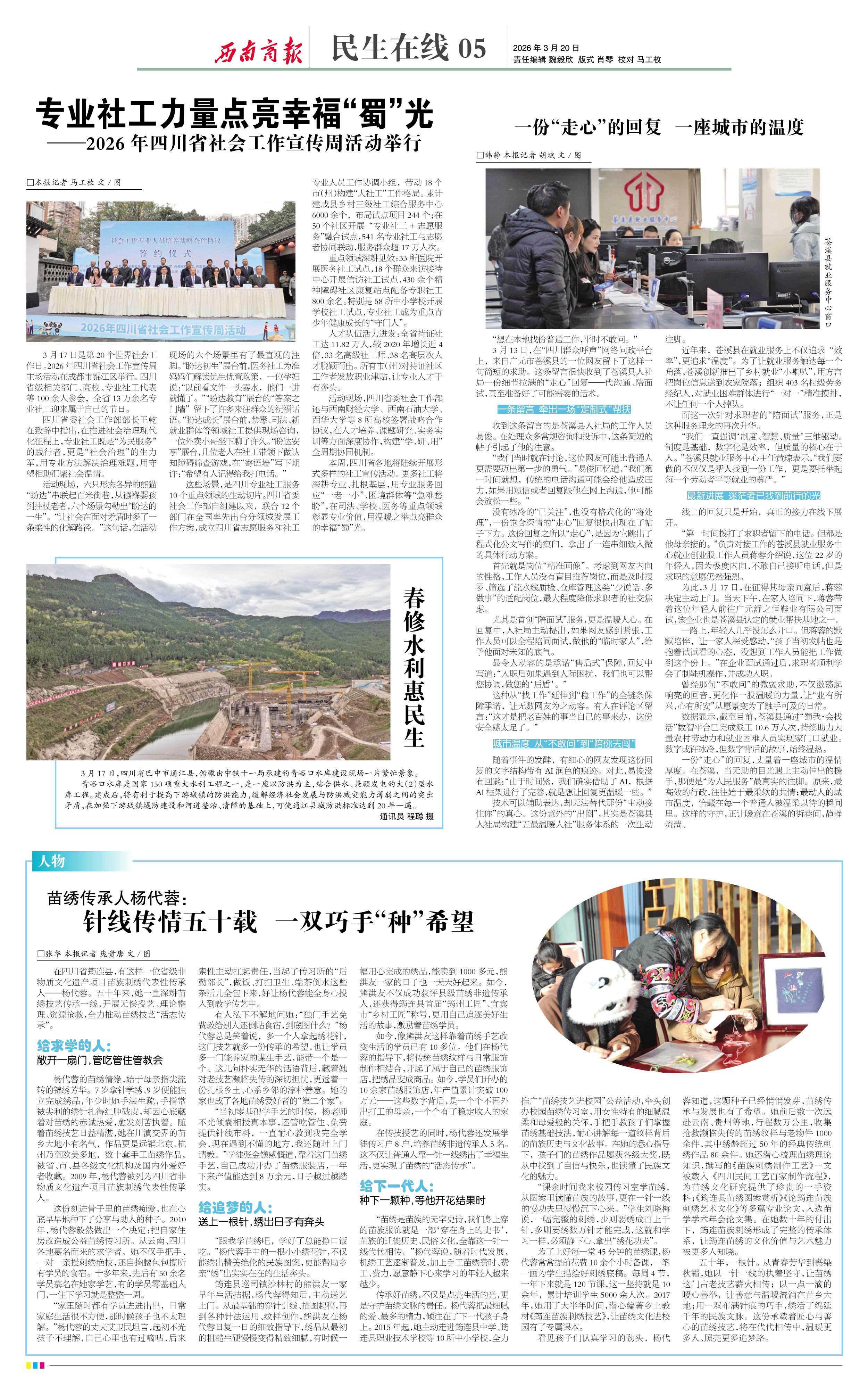 3月17日是第20个世界社会工作日。2026年四川省社会工作宣传周主场活动在成都市锦江区举行。四川省级相关部门、高校、专业社工代表等100余人参会,全省13万余名专业社工迎来属于自己的节日。