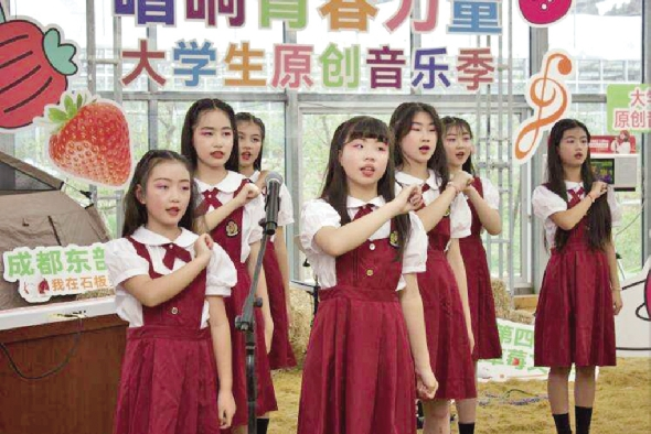 作为航空草莓文化季的重头戏,大学生原创音乐会在希望的田野上激情唱响。来自成都体育学院、吉利学院、四川电影电视学院等高校的学子们,以流行、摇滚、国风说唱等多元形式,将《古道旁》《倒影》等一批充满朝气与才华的原创作品献给这片热土。