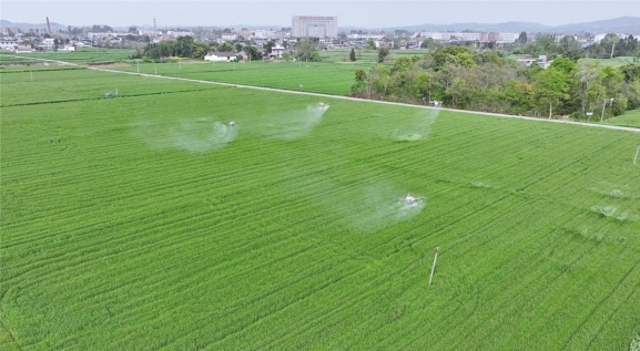 当前正是小麦病虫害防控、保穗增产的关键节点。在德阳市旌阳区杨虎农机专业合作社的麦田里,植保无人机正在开展麦田“一喷三防”统防统治作业,短短两个小时便完成了200余亩麦田的防控任务。