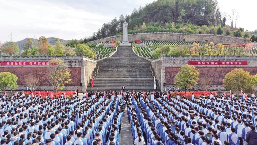 经过8公里徒步,全体师生怀着无比崇敬的心情,有序进入万源市烈士陵园。