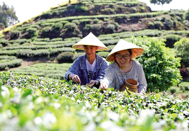 4月4日,位于重庆市永川区大安街道花果山上的重庆玉琳茶业有限公司2000多亩的茶园里,茶农们指尖翻飞间,片片嫩芽落入竹篓,欢声笑语回荡在青山翠谷间,勾勒出一幅动人的春日田园乐章。同时,不少游客也走进茶园、步入茶舍,体验采茶制茶的乐趣,感受丰收的喜悦。