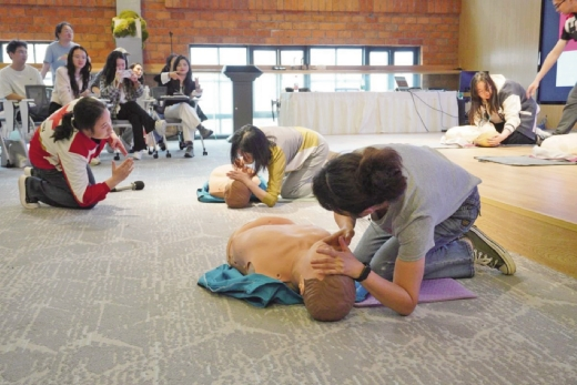 理论学习结束后,培训进入实操训练环节。讲师现场示范,并手把手指导学员进行心肺复苏、止血包扎、AED使用等实操练习,及时纠正操作误区,帮助学员掌握急救核心技能。“按压深度应达到5至6厘米,频率保持在每分钟100到120次。”讲师在分组指导中逐一纠正学员的按压力度与人工呼吸细节。此外,学员们还两两组队,认真练习三角巾包扎、止血带使用等实用技巧,切实提升了应对突发状况的自救互救能力。