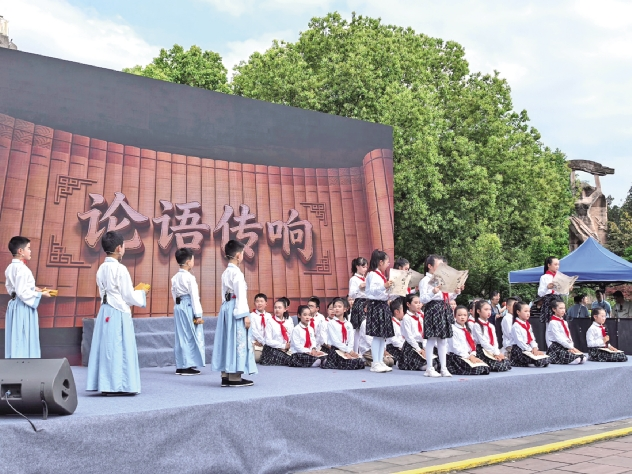 当日下午,石刻公园化身沉浸式诵读舞台,一场融合经典文脉、德阳城市精神与时代旋律的诵读盛典在这里精彩上演。整场盛典亮点纷呈、高潮迭起,稚趣童真的情景剧《安逸游德阳》生动展现德阳文旅魅力,荡气回肠的《三星堆颂》深情致敬古蜀文明,穿越千年的《论语》经典合诵赓续中华文脉,节奏铿锵的《全民阅读赞》音乐快板唱响阅读新风。活动还重磅发布了德阳年度阅读数据,以详实的数据勾勒出城市的阅读画像。现场还上演了科技感十足的机器人、机器狗表演,将现代科技与书香氛围巧妙融合,让现场观众在声韵流转中,沉浸式感受文字的力量、阅读的魅力与德阳的城市风华。