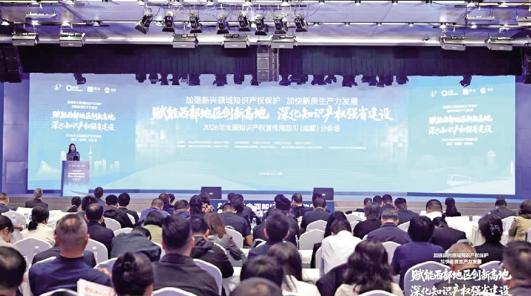 本报讯(记者 李国华)4月21日,2026年全国知识产权宣传周四川分会场活动在成都举行。活动由四川省市场监督管理局(省知识产权局)、四川省版权局与成都市、绵阳市、宜宾市人民政府联合主办,紧扣“加强新兴领域知识产权保护加快新质生产力发展”主题,生动展示四川以知识产权强省建设为抓手,加快打造西部地区创新高地的积极成效。
