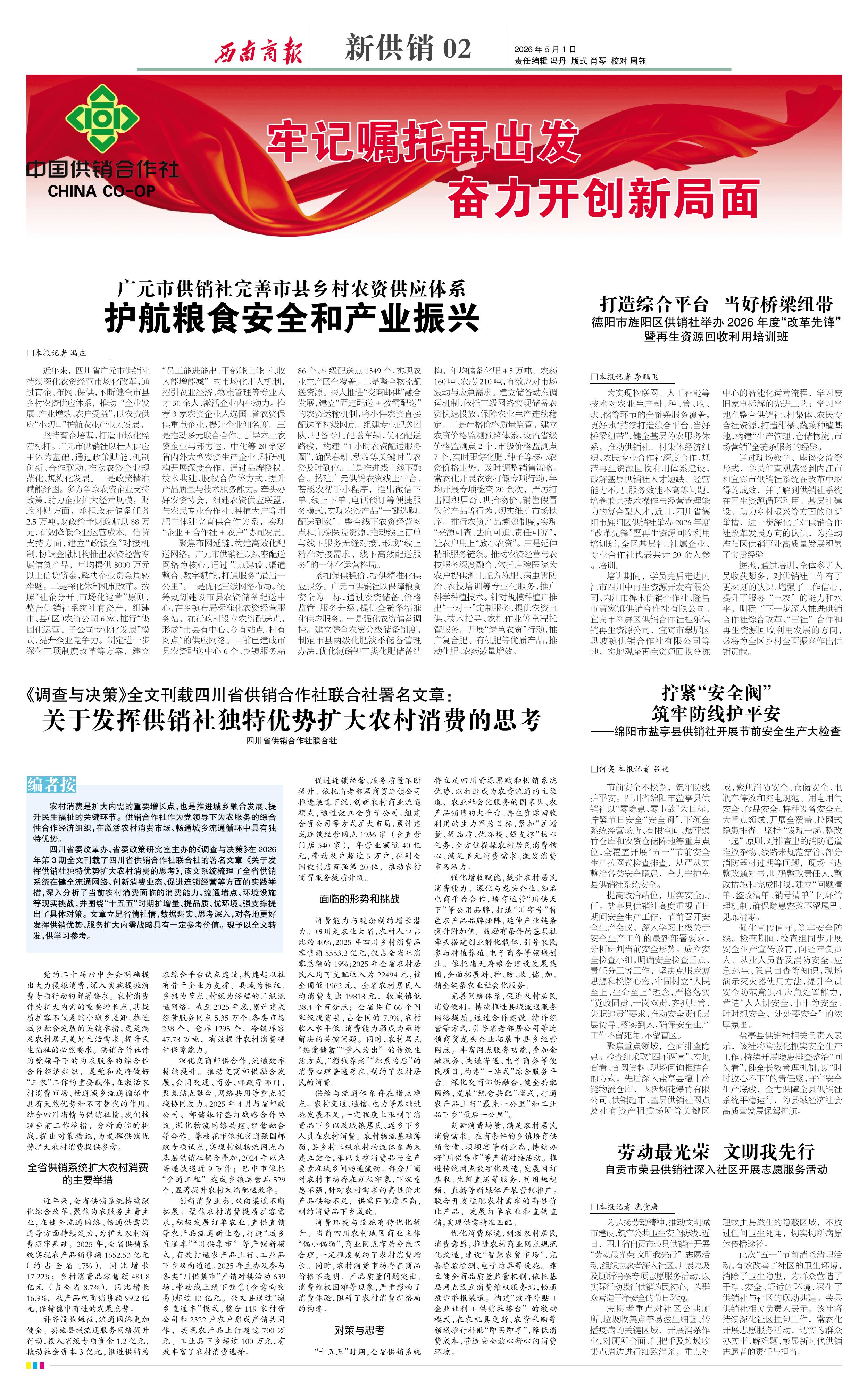盐亭县供销社相关负责人表示,该社将常态化抓实安全生产工作,持续开展隐患排查整治“回头看”,健全长效管理机制,以“时时放心不下”的责任感,守牢安全生产底线,全力保障全县供销社系统平稳运行,为县域经济社会高质量发展保驾护航。